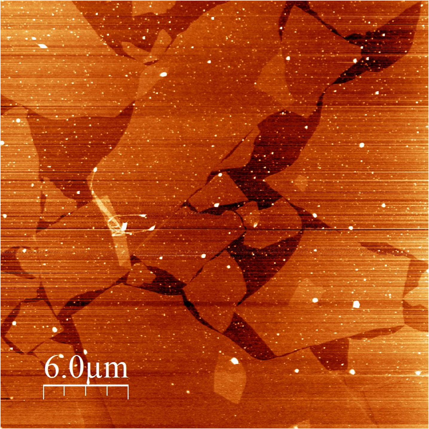 Right: An image of a Langmuir-Blodgett film of graphene imaged using the JPK NanoWizard® ULTRA Speed AFM.