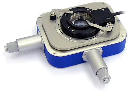 The key element of the BioMAT™ Workstation design is a portable shuttle stage that carries the actual sample. The transfer of the shuttle stage from AFM to the microscope, or vice versa, allows precise transport of the sample between the field of view of the optics and the AFM scan range without losing position. This transfer can be repeated as often as necessary, allowing the sequential measurement of optics and AFM for time lapse studies. By using dipping lenses for the upright microscope, the setup is compatible with in-fluid operation.