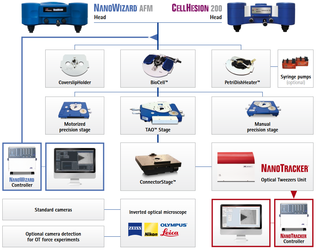 - All NanoTracker™, NanoWizard®/CellHesion® 200 systems can be combined to become a complete OT-AFM-platform